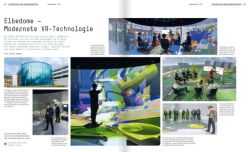 Das Fraunhofer-Magazin »weiter.vorn« Wie entwickeln wir die Zukunft. – eine Zeitschrift für Forschung, Technik und Innovation der Fraunhofer-Gesellschaft berichtet in ihrer ersten Ausgabe 2019 über das Magdeburger Mixed-Reality-Labor im Beitrag »Elbedome – Modernste VR-Technologie«. Das Dokument ist unter dem folgenden Link auf der Homepage der Fraunhofer-Gesellschaft abrufbar.